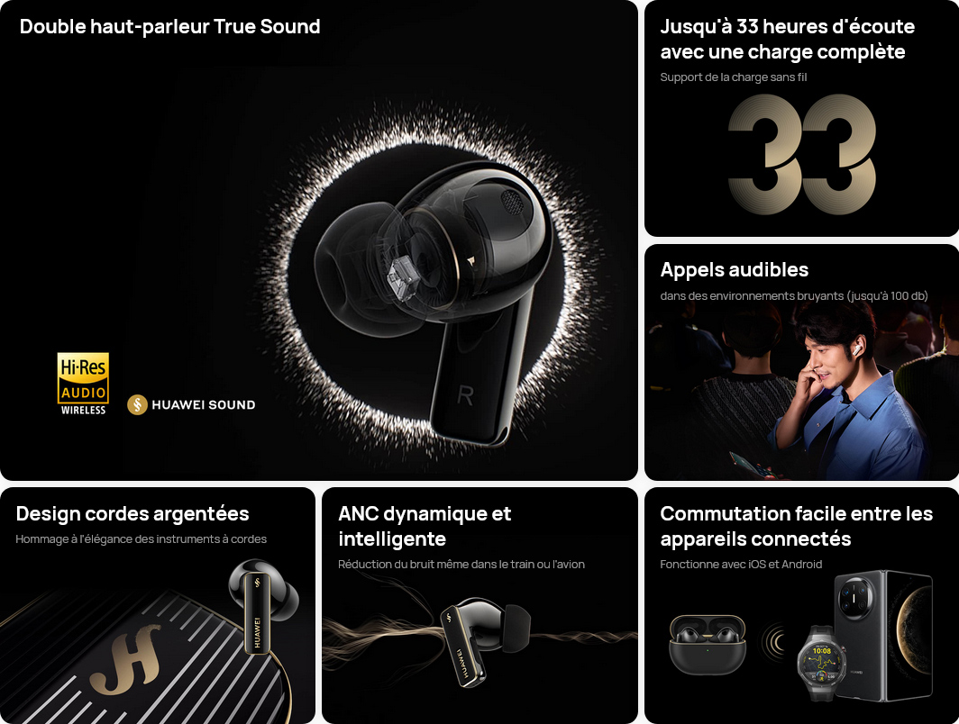 - Écouteur : 55 mAh / Boîtier : 510 mAh